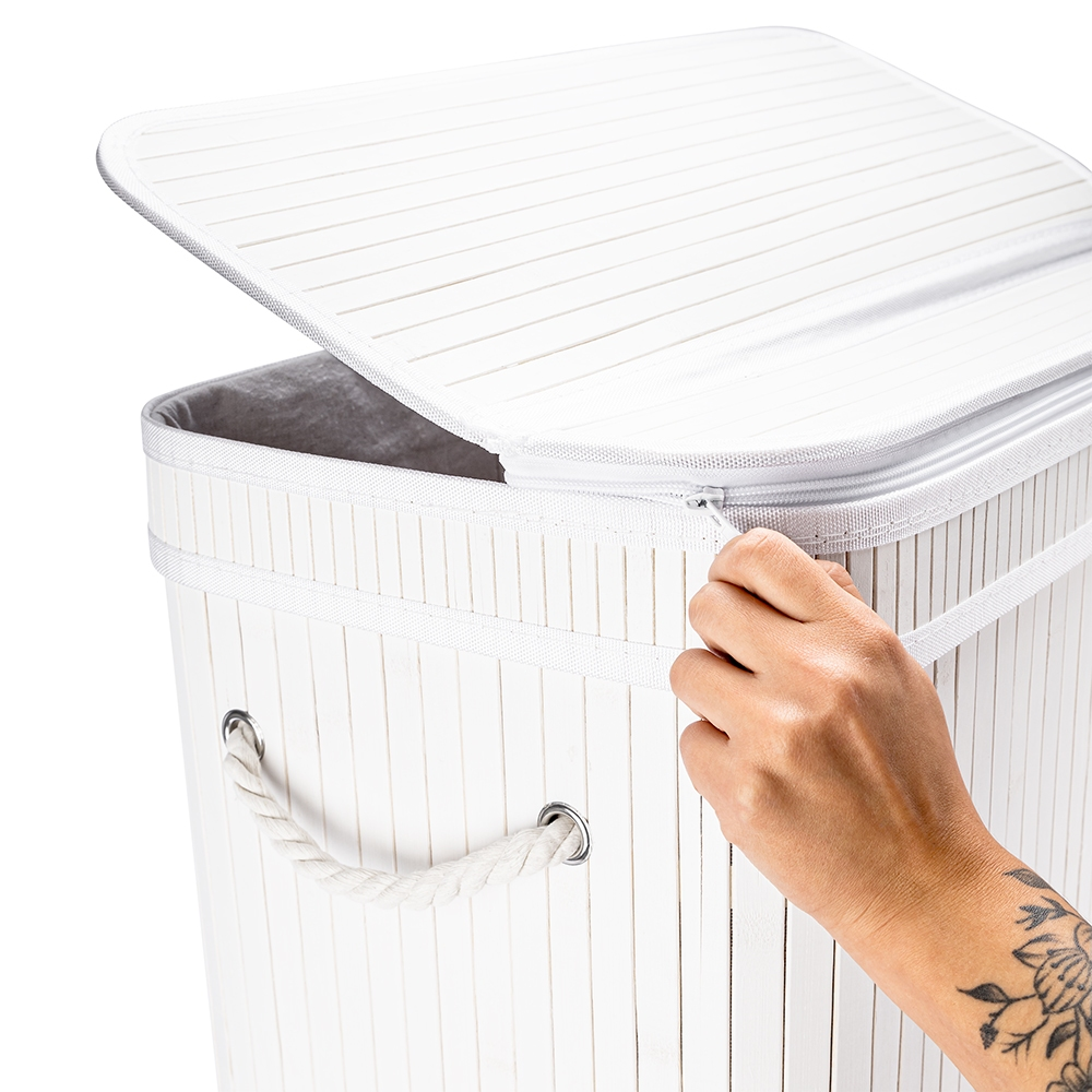 Com capacidade generosa de 105 litros, ele acomoda facilmente as roupas da semana inteira, mantendo o ambiente visualmente limpo e organizado. Seu formato retangular se adapta com naturalidade a closets, lavabos, lavanderias e dormitórios, mesmo em espaços reduzidos.